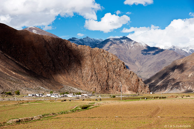 Landschaft am Weg zum Tshurphu-Kloster (70km nordöstlich von Lhasa auf 4480m Hoehe)