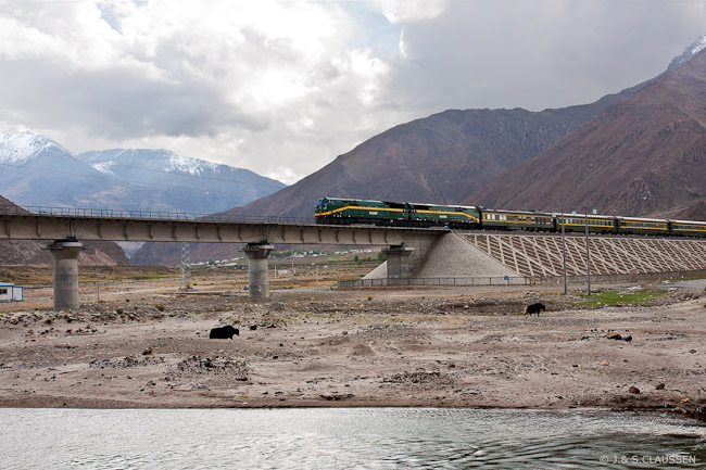 Lhasa-Bahn auf der Brücke über den Fluss TOELUNG CHA, kurz vor Lhasa